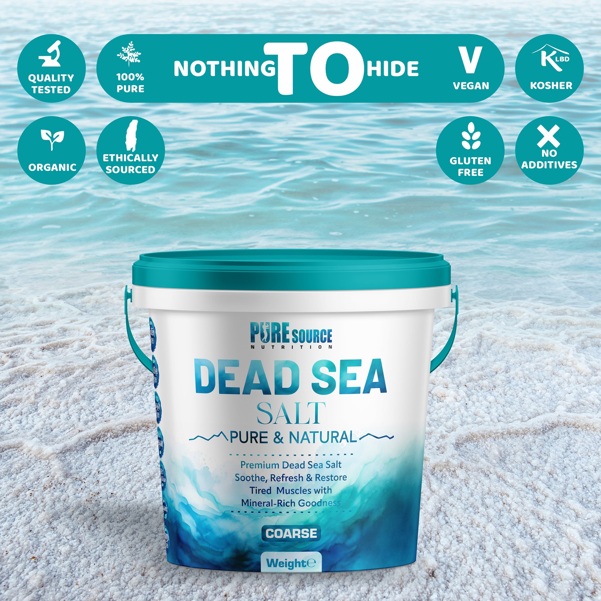 Dead Sea Salt Coarse 1mm-2mm — 100% pure, with no additives or synthetic fragrances.